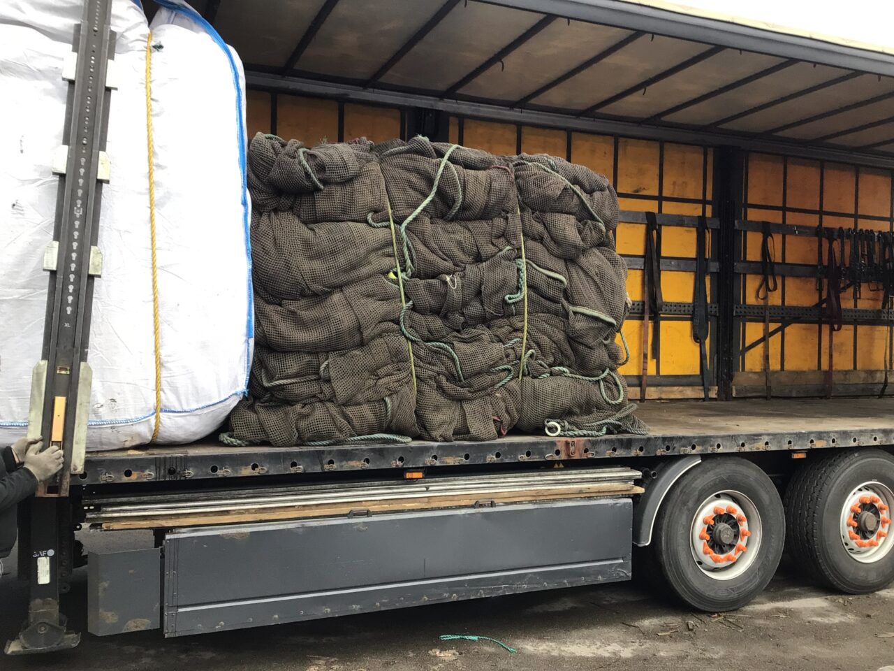 2025. aasta novmebri alguses jõudis Ukraina partneriteni ka üks meie raskemaid saadetisi – 36 tonni kalavõrke. Seoses suure drooniohuga ehitatakse Ukrainas teede kohale postidele kalavõrkudest tunneleid, mis aitavad kaitsta teel liikuvaid inimesi ja masinaid.